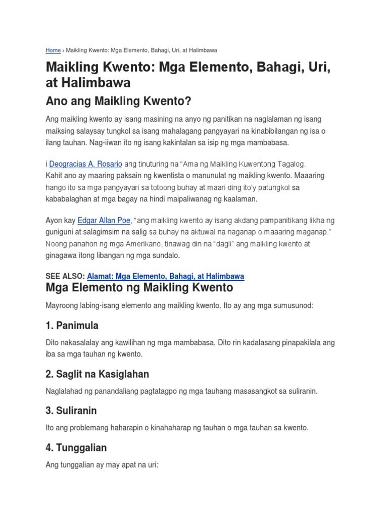 Save Save Mga Halimbawa Ng Maikling Kwento For Later. Paksa tumutukoy sa sentral na ideya sa loob ng kuwento. Mga Bahagi ng Maikling Kwento Ang maikling kwento ay may tatlong bahagi.