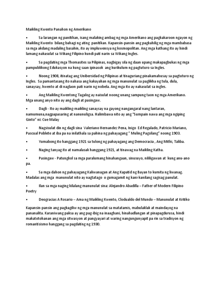 Maikling Kwento Panahon Ng Amerikano Pdf