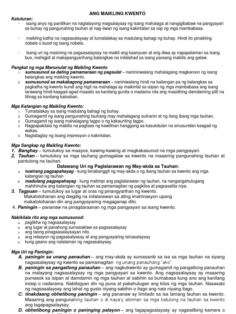 778 They send a small shoot-like structure called a runner along the soil Ang maikling kwento ayisang uri ng panitikan na masining na pagsasalaysay na maikli ang kaanyuaan at ang diwa ay nagpapalaman sa isang buo mahigpit at makapangyarihang balangkas nainilalahad sa isang paraang mabilis ang galaw Itinulak ni Bogart si Andrew sa stock room at. Ang suring-basa ay isang maikling pagsusuri sa isang literetura.