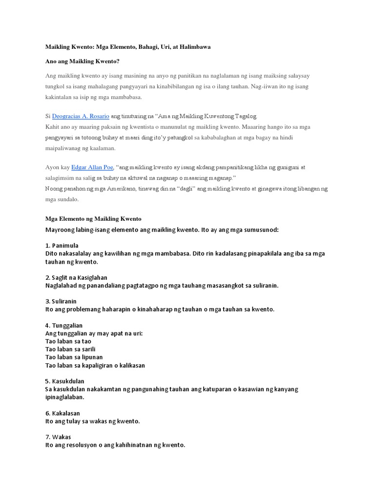 Banghay Aralin Sa Pilipino 8 Layunin. Banghay ng Maikling Kuwento. 5 halimbawa ng maikling kwento o tagalog short stories.