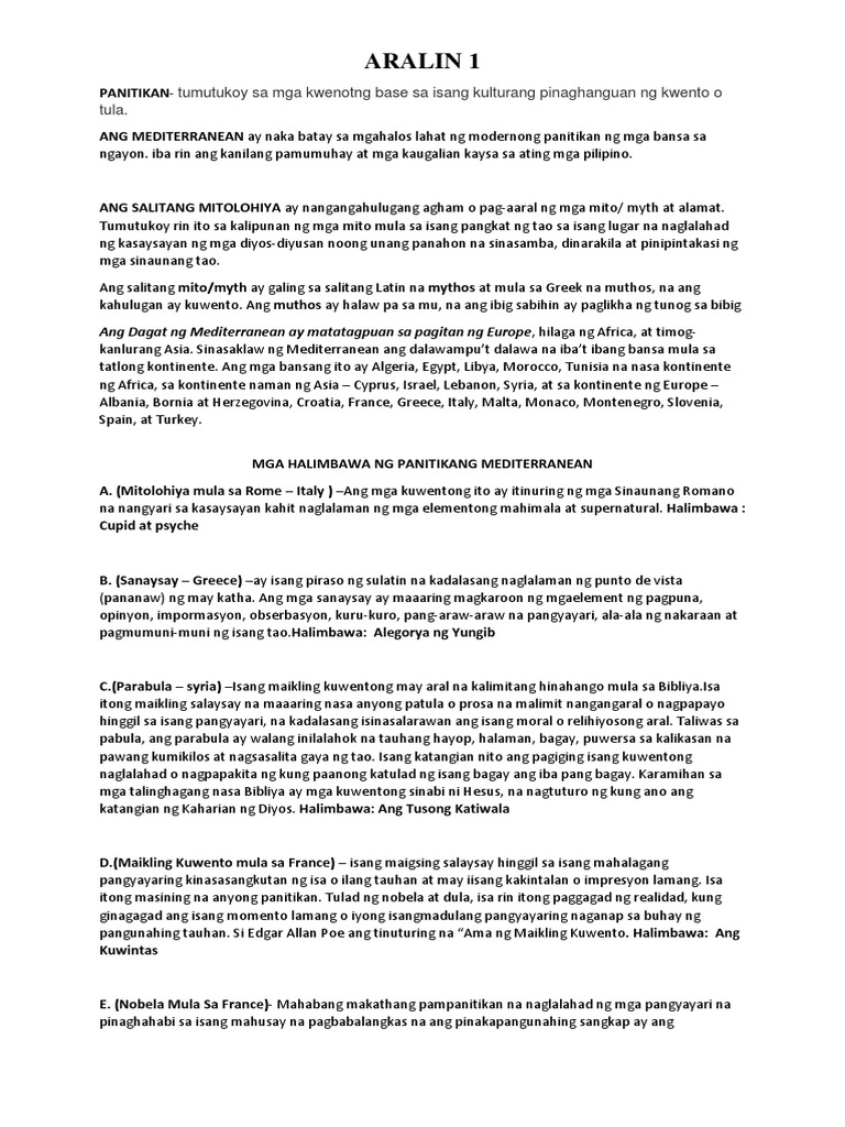 Mga Akdang Pampanitikan Ng Mediterranean Pdf